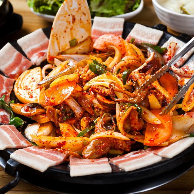 맛이 없을 수 없는 황금조합 쭈꾸미 새우 삼겹살 매콤 쭈삼새