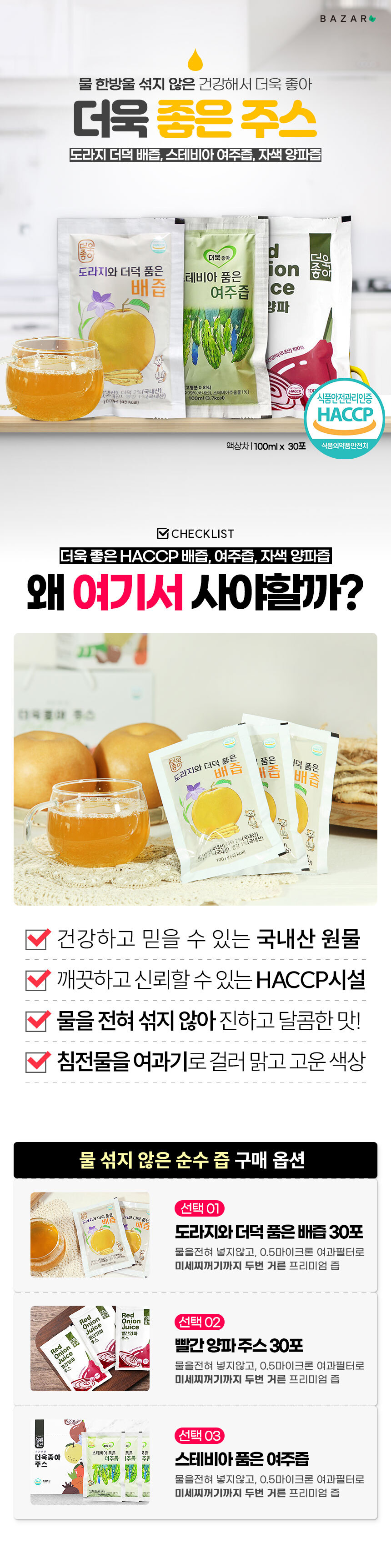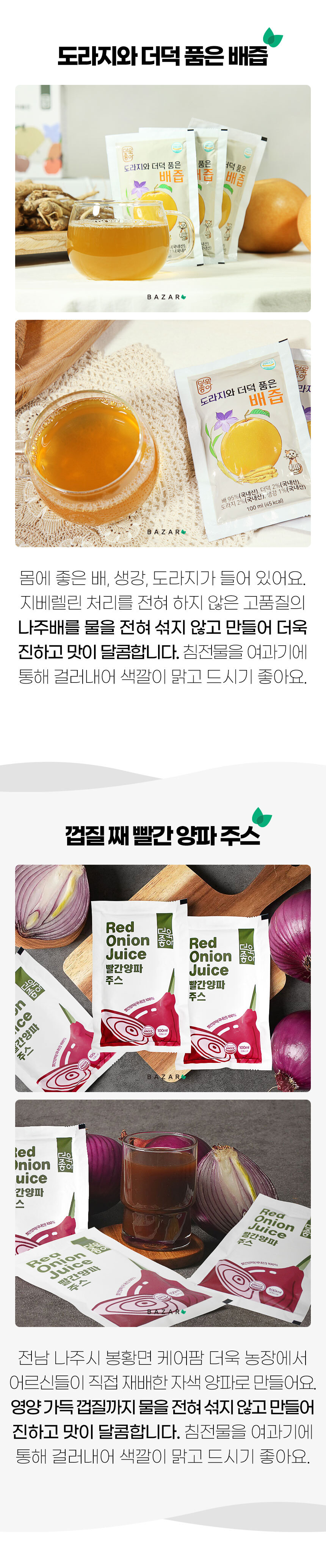 물을 섞지 않고 원물 그대로 짜낸 건강주스
