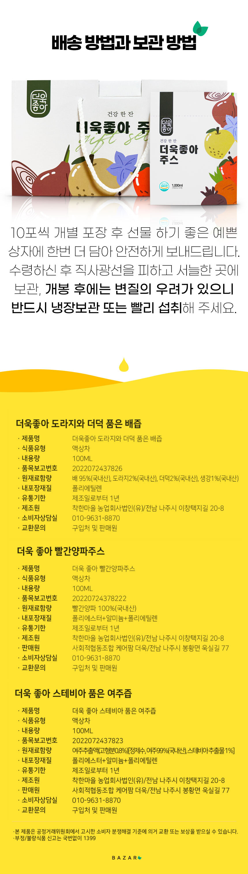 | 9. 소비자 안전을 위한 주의사항 (「식품 등의 표시ㆍ광고에 관한 법률 시행규칙」 제5조 및 [별표 2]에 따른 표시사항을 말함) | 상품 상세정보 참조 |